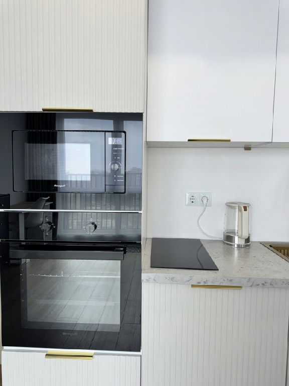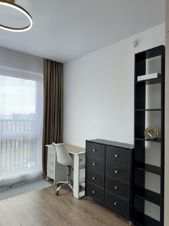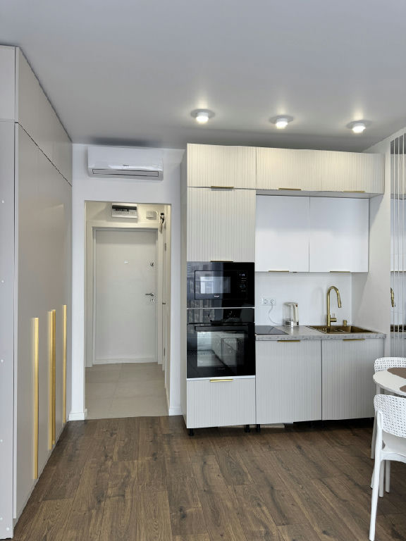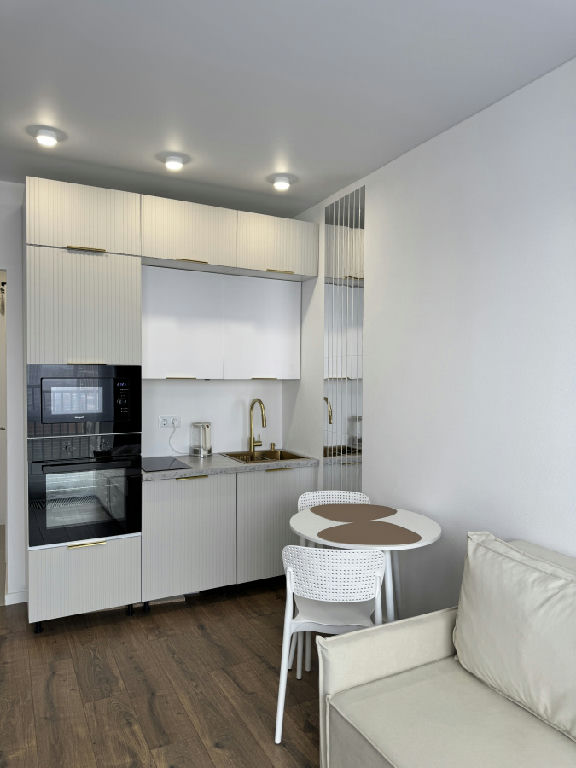 Каждая деталь продумана до мелочей: вместительный шкаф, рабочая зона у окна с панорамным видом, раскладной замшевый диван, абсолютно новая встроенная техника (стиральная машина, холодильник, духовой шкаф, микроволновая печь, плита, кондиционер, стиральная машинка) - все остается новым собственникам!